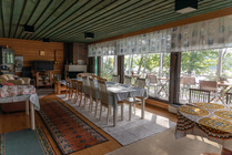 Kesäkodin päärakennuksessa on viihtyisä ja tilava oleskeluhuone, 3 makuuhuonetta, keittiö, wc-tilat ja upea, katettu ulkoterassi, josta on näköala järvelle. Varustuksiin kuuluu täydellinen astiasto noin neljällekymmenelle hengelle, wc- ja talouspaperit, tilava kylmiö, pakastin, TV ja nopea laajakaistayhteys. Lasten pinnasänky ja lasten syöttötuoli. Tiskikonetta ei ole, joten tuo halutessasi mukanasi kertakäyttöastioita. Myös liinavaatteet ja pyyhkeet pitää tuoda mukanaan.